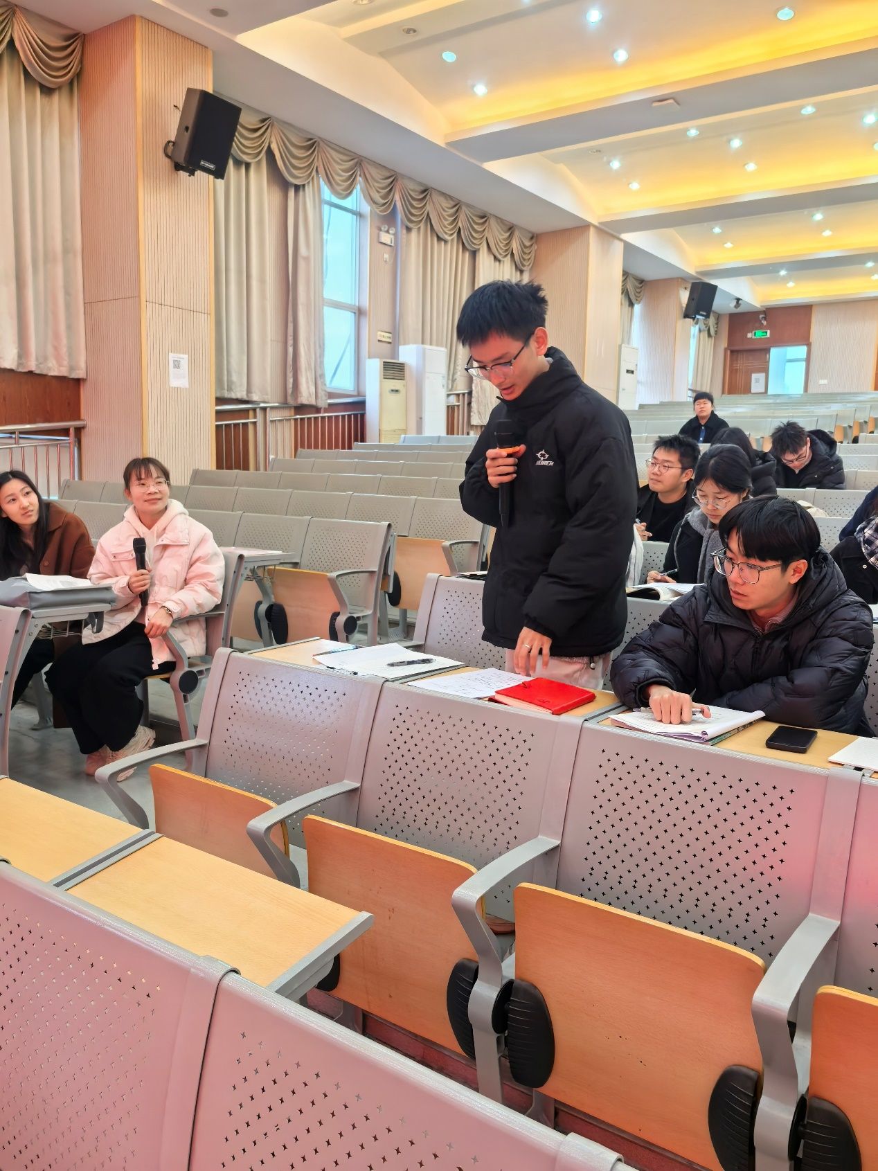 最后2022级地理科学(师范)班的华雯婕、叶健淋等同学围绕学案材料衔接、自然障碍分析、地理思维培养及教材处理等方面向叶津杨老师发出了提问。叶老师回应称:材料设计需强化图文关联,自然障碍分析应立足区域背景整合必修知识;学生思维需通过重复训练与学情诊断逐步提升;公开课需聚焦核心内容取舍,常态课可补充细化。针对问题层次性,叶老师建议以“桥隧结合”为切入点,分“海面-水体-海底”空间视角构建答题逻辑,呼应学科思维培养目标。对同学们的问题做出了一一解答,帮助同学们更好地建立地理教学中的教学思维。