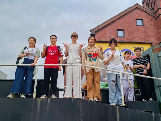 短暂休整后,各小组在门口的火车与铁轨遗址附近进行了参观与合影。随后来到对面的文创港建筑内部,驻足于由旧厂房改造而成的诺丁山艺术中心,近距离感受到新旧交融的空间魅力与场所精神,对城市的历史与现代发展有更加直观的认识。