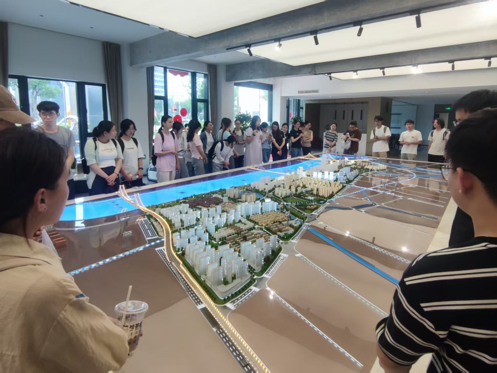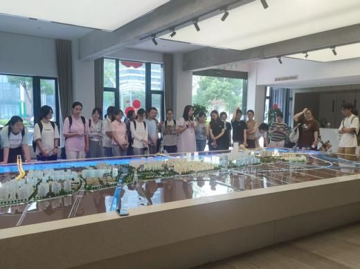 在文创港片区,同学们通过观察文创港大厅内的沙盘模型,邀请在此工作的国产探花