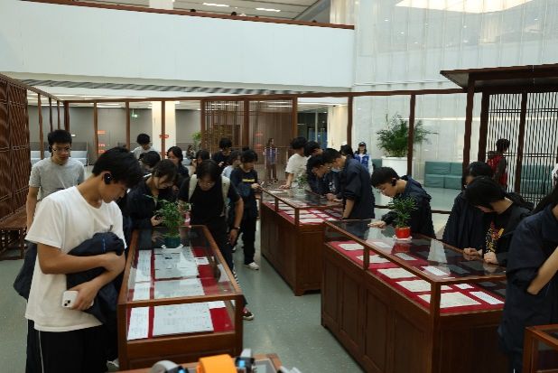 随后,同学们来到真诚图书馆,在讲解员的带领下参观了展品区、藏书区和自习区。馆内丰富的藏书、完善的设备令学生们赞叹不已。校园参观环节中,大家依次打卡南天门、包氏教学楼群、大草坪等地标,并在北门大踏步前合影留念,记录青春与学术交融的瞬间。