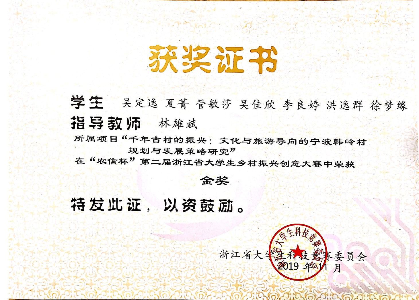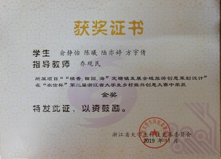 2019年第二届浙江省大学生乡村振兴创意大赛金奖