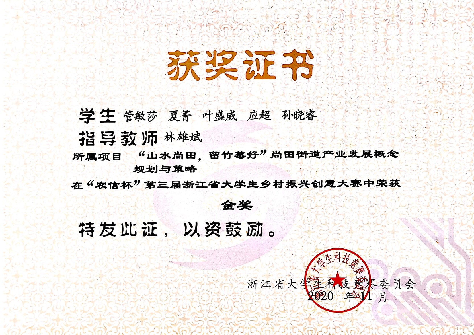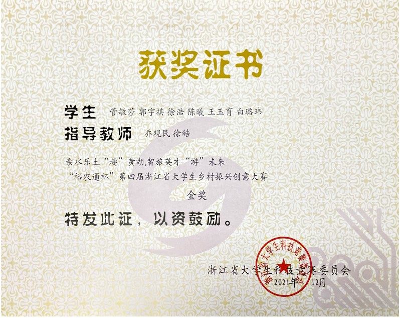 2021年第四届浙江省大学生乡村振兴创意大赛金奖