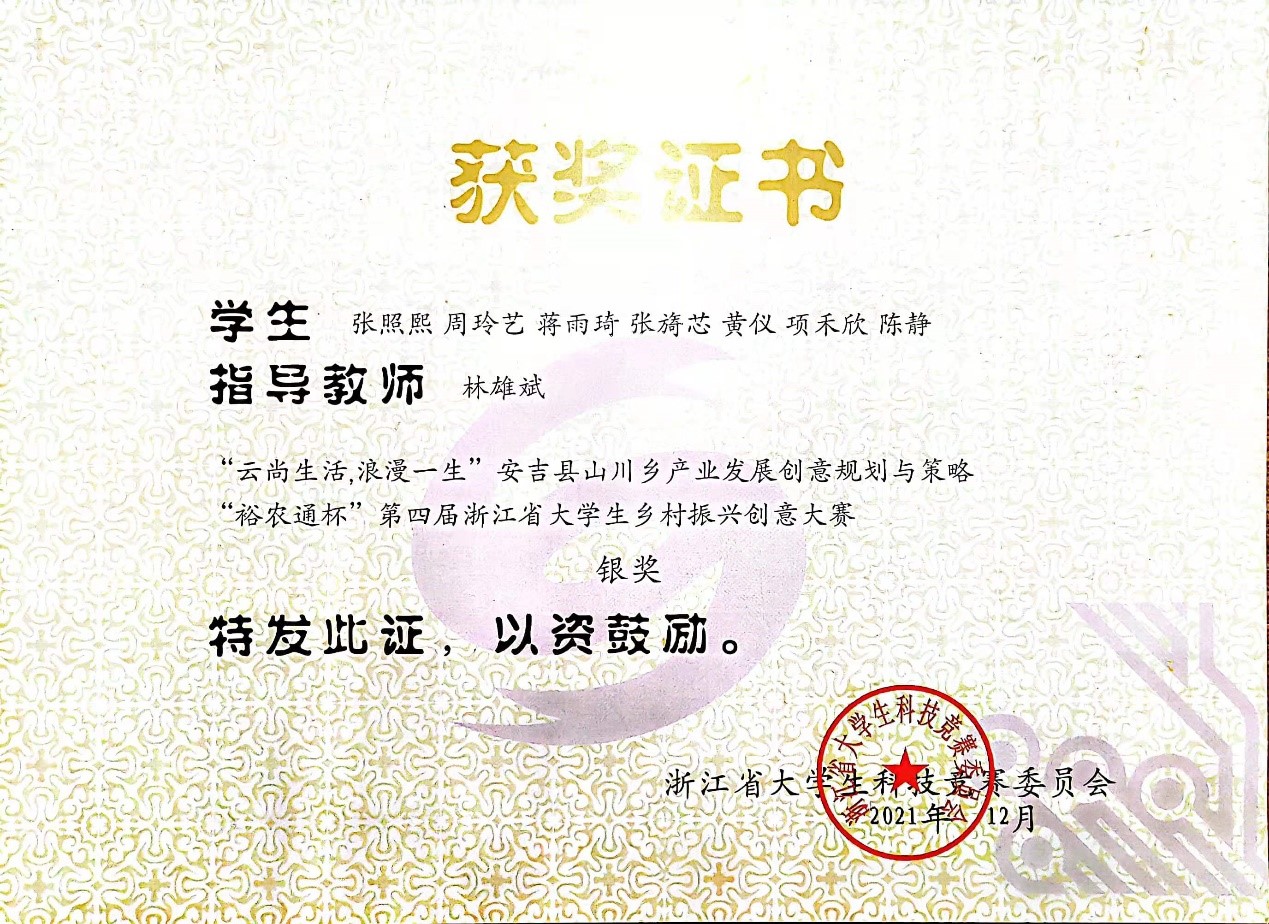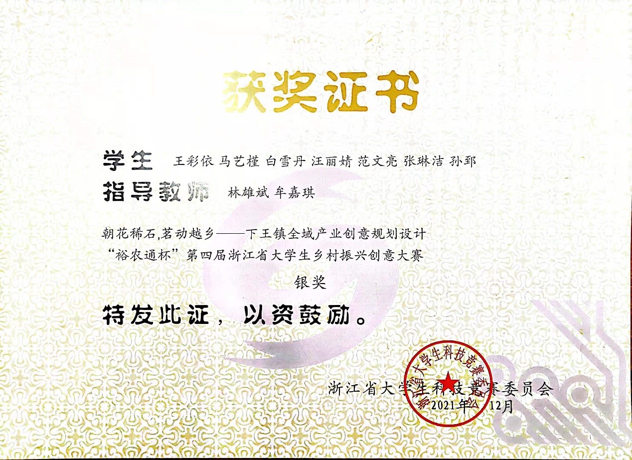 图 9 第四届浙江省大学生乡村振兴创意大赛银奖