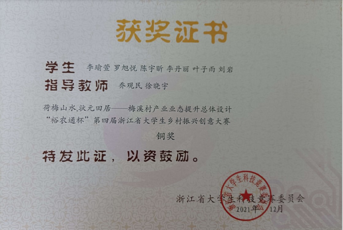 2021年第四届浙江省大学生乡村振兴创意大赛铜奖
