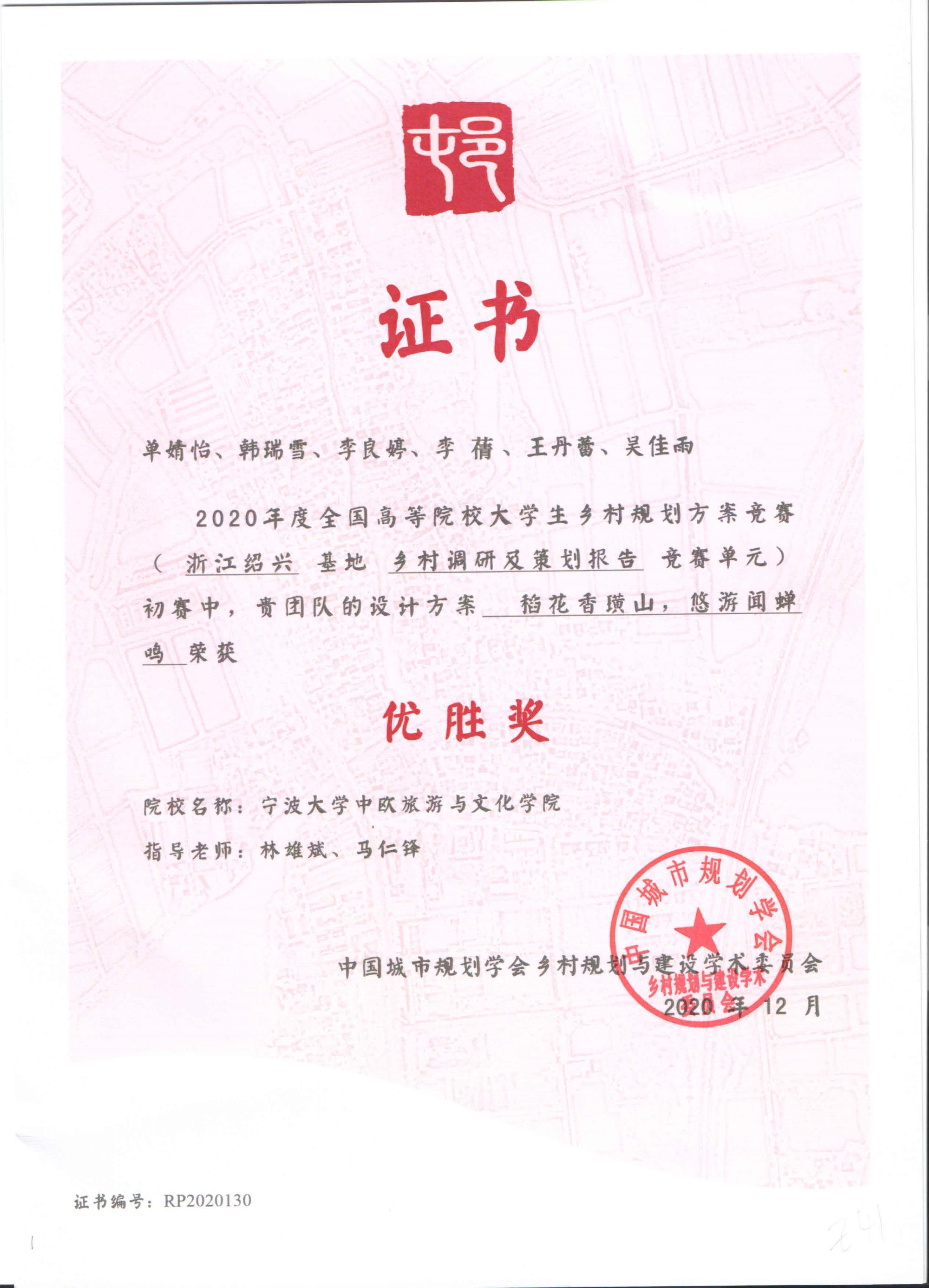 图 5 全国高等院校大学生乡村规划方案竞赛优胜奖(2020年度)