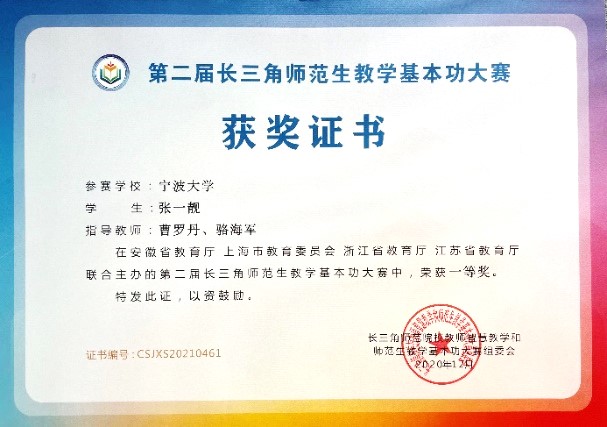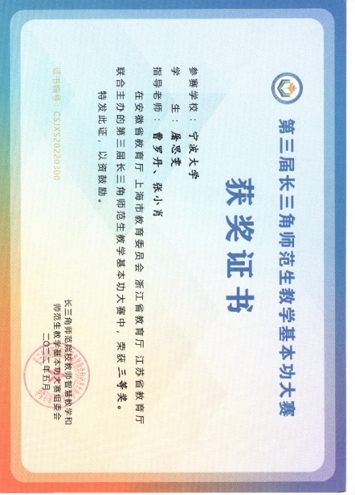 3. 2021年第三届长三角师范生教学基本功大赛 三等奖