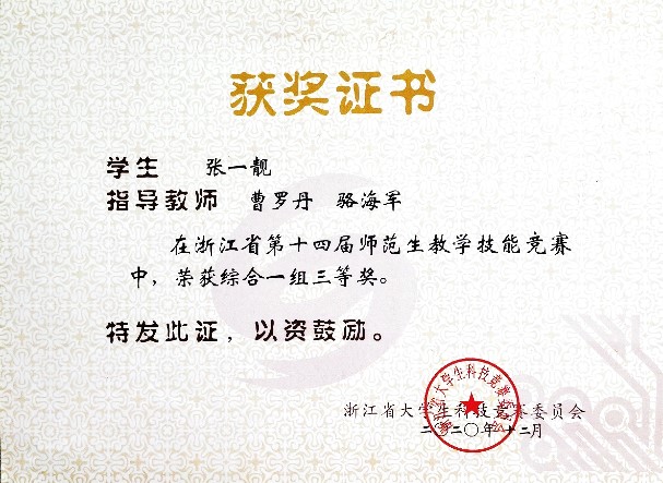 5. 浙江省第十四届师范生教学技能竞赛 三等奖