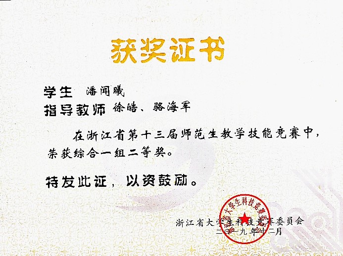 4. 浙江省第十三届师范生教学技能竞赛 二等奖