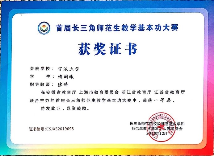 1. 2019年首届长三角师范生教学基本功大赛 一等奖