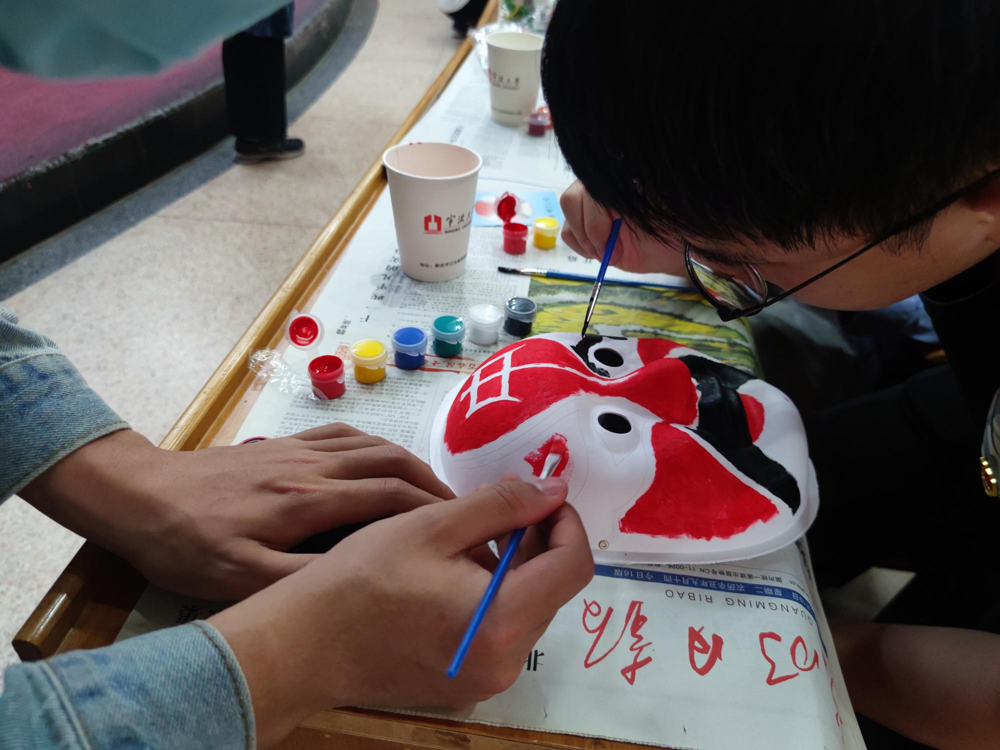 活动现场,学院党委副书记、纪委书记朱剑琼还为大家介绍了京剧脸谱的起源和颜色的意义,并通过让在场师生现场体验画脸谱的方式展开了校园廉政主题交流。师生们纷纷拿起画笔,在对脸谱色彩的理解上,发挥自己的想象力和创造力,有的画红脸的关羽,有的画黑脸的包公等,一幅幅五彩的脸谱生动地展现了大家对校园廉政的理解与体会。