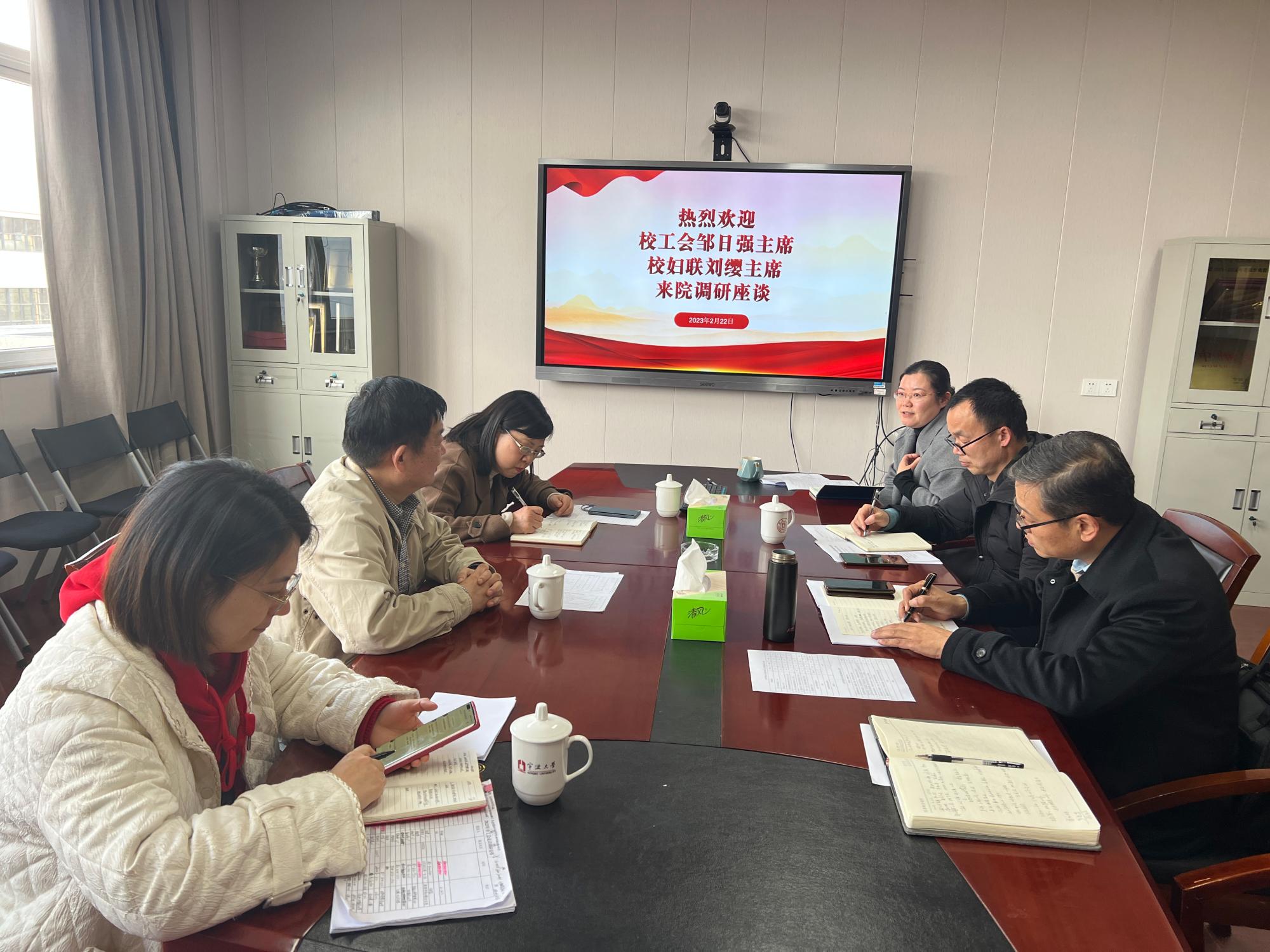 2月22日下午,校工会主席邹日强、妇联主席刘缨等一行到国产探花 调研。学院党委书记李加林、副书记朱剑琼、分工会主席严晓东等参加座谈。