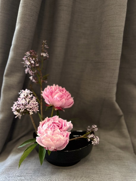 中国古典插花由来已久,源于对自然的一种敬畏。活动中采用芍药和丁香中式应季花材,从植物属性出发带给所有老师们和校友们“四时有序”的自然力量,感受到与自然的联结,也看到生命的每一次努力绽放,是花的力量,也是我们用心生活的力量。从立意、构图、色彩至意蕴皆是对传统的诠释,这样的作品才具有深刻的人文情感和意蕴风骨,生命也在此延展、融合。