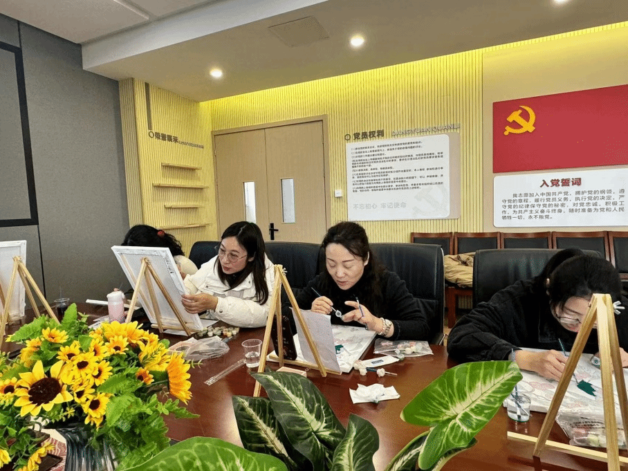 活动分为数字油画创作和手工佩饰制作两项内容。数字油画绘制过程轻松灵活,几支小画笔轻松搞定一幅油画,在细碎的小温柔中,在轻扬的音乐声中,大家感受着色彩的温度和美的滋养。