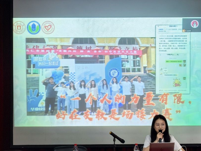 第二位分享人是2024届地理科学(师范)专业本科校友欧阳双同学,她通过网络连线的方式带我们探访兴仁三中校园,感受浓厚的校园文化。